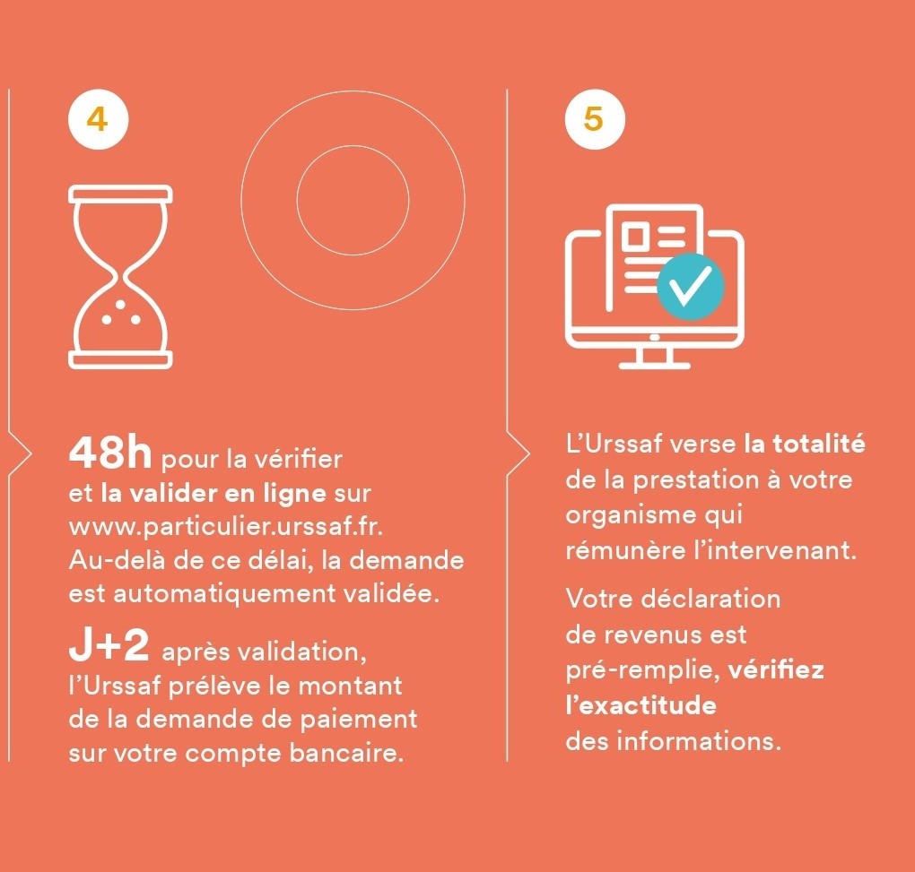 • C’est très simple puisque c’est Cuisine et Sourires qui s’occupe de tout ! Avec votre autorisation, c’est votre organisme de services à la personne qui crée votre compte. Ensuite, vous recevez une notification de l’Urssaf vous invitant à activer votre compte sur un site dédié : www.particulier.urssaf.fr.